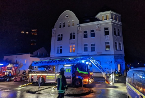 Feuerwehr Hannover rettet eine schwerverletzte Person aus einer in Vollbrand stehenden Wohnung im 4. Obergeschoss