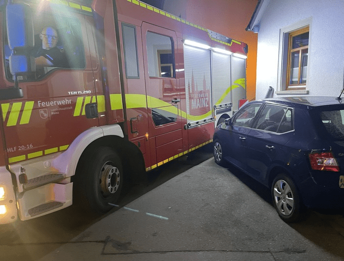 Feuerwehr Mainz rückt zu Wohnungsbrand in Gonsenheim aus. Falschparker behindern Einsatzkräfte