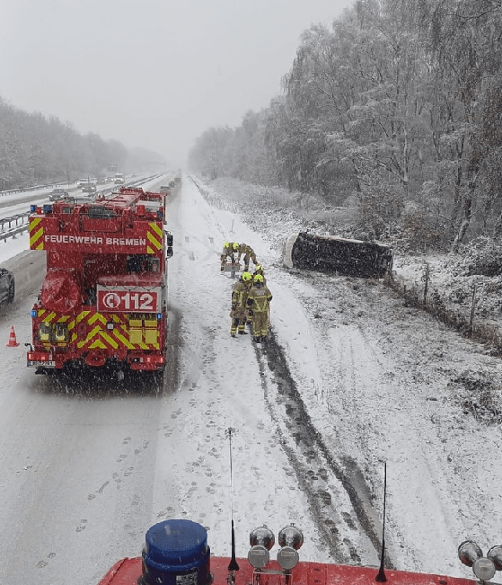 3.1.2026 – Das winterliche Wetter hat am Sonnabendmorgen zu einer Reihe von Unfällen geführt. Auch die Feuerwehr Bremen war betroffen. Gegen 10:25 Uhr ist ein Kleintransporter, der für Versorgungsfahrfahrten zwischen den Feuer- und Rettungswachen eingesetzt wird, auf schneeglatter Straße ins Schlingern geraten, von der Fahrbahn abgekommen und auf dem schneebedeckten Grünstreifen auf der Seite zum Liegen gekommen. … weiterlesen