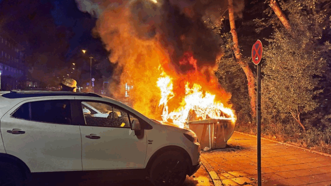 In den frühen Morgenstunden des Dienstags sind zwei Glascontainer im Humannweg in Brand geraten. Ein Übergreifen der Flammen auf nahe geparkte Fahrzeuge musste dringend verhindert werden.