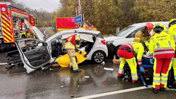 Am Mittwoch, dem 19. November 2025, wurde die Feuerwehr Ratingen um 13:36 Uhr zu einem Verkehrsunfall auf der Mettmanner Straße, kurz vor der Auffahrt zur A44, alarmiert. Mehrere Anrufer meldeten einen Zusammenstoß mit mehreren beteiligten Fahrzeugen. Beim Eintreffen der ersten Kräfte bestätigte sich die Meldung. Drei PKW waren im Abbiegebereich kollidiert. Eine Person war in ihrem Fahrzeug eingeschlossen und zeigte Hinweise auf ein mögliches Wirbelsäulentrauma. Zudem wurden zwei weitere Personen leicht verletzt. Die Feuerwehr leitete daraufhin umgehend die notwendigen Maßnahmen ein. Dazu gehörten das Sichern der Fahrzeuge, das Herstellen des Brandschutzes sowie eine umfassende Verkehrsabsicherung. Im Anschluss erfolgte die patientenorientierte Rettung der eingeschlossenen Person mittels hydraulischem Rettungsgerät. Alle drei Verletzten wurden durch den Rettungsdienst der Städte Ratingen und Heiligenhaus versorgt und anschließend in Krankenhäuser transportiert.