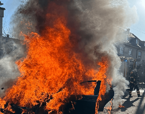 Das alarmierte Löschfahrzeug der Feuerwehr konnte bereits auf Anfahrt eine starke Rauchentwicklung sehen und wurde schließlich von einer aufgeregten Dame, einer unverletzten Katze und einem vollständig brennenden Mercedes-Benz erwartet. Ein Trupp unter Atemschutz konnte mit dem Schnellangriffsschlauch und den 1.600 Litern Löschwasser im Tank des Löschfahrzeuges die Flammen schnell niederschlagen und den Brand bekämpfen. Ein angrenzendes Wohnhaus wurde sicherheitshalber auf eine mögliche Verrauchung kontrolliert, diese konnte aber ausgeschlossen werden.
