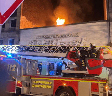 2.3.2026 – Ein Feuer in einem zweigeschossigen Einzelhandelsgeschäft in der Dortmunder Innenstadt beschäftigte die Feuerwehr Dortmund in der Nacht von Sonntag auf Montag. Personen kamen nicht zu schaden. Um etwa 23:20 Uhr wurde die Einsatzleitstelle der Feuerwehr Dortmund über ein Feuer in einem Gebäude am Schwanenwall informiert. Bei Eintreffen der ersten Kräfte waren Flammen auf dem Dach eines zweistöckigen Einzelhandelsgeschäftes zu erkennen. Die Feuerwehr leitete unmittelbar die Brandbekämpfung über eine Drehleiter ein. Vorsorglich wurden die Bewohner des Nachbargebäudes evakuiert und in einem bereitgestellten Bus untergebracht. Aufgrund der unklaren Situation zu Beginn des Einsatzes wurden weitere Kräfte zur Unterstützung nachgefordert. Auch Spezialkräfte für Sonderlöschtechnik der Feuerwehr Dortmund wurden hinzu alarmiert. Durch die eingesetzte Drohne des Fernmeldezuges der Freiwilligen Feuerwehr konnte die Situation aus der Luft unter anderen mit Wärmebildaufnahmen besser eingeschätzt werden. Das Feuer hatte sich im 1. Obergeschoss des Geschäftshauses ausgebreitet und konnte letztendlich mit Schaum vollständig abgelöscht werden. Das schnelle Eingreifen der Feuerwehr verhinderte eine Ausbreitung des Brandes auf die Nachbargebäude. Aufgrund des Einsatzes war der Schwanenwall einseitig gesperrt. Die Nachlöscharbeiten zogen sich noch bis weit nach Mitternacht. Eine Kontrolle des Gebäudes nach Glutnestern um 5:00 Uhr verlief ohne Erkenntnisse. Im Einsatz waren mehr als 80 Kräfte der Freiwilligen Feuerwehr und der Berufsfeuerwehr. Die Brandursache wird nun durch die Kriminalpolizei ermittelt.