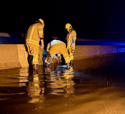 19.4.2026 – In den frühen Morgenstunden des 19. April wurde die Feuerwehr Ratingen um 03:08 Uhr zu einem Verkehrsunfall auf der Bundesautobahn 3 in Fahrtrichtung Köln alarmiert. Die Unfallstelle lag zwischen dem Autobahnkreuz Breitscheid und dem Autobahnkreuz Ratingen-Ost. Erste Meldungen berichteten von einer eingeklemmten Person, was sich beim Eintreffen der Einsatzkräfte glücklicherweise nicht bestätigte. Zwei PKW waren beteiligt, deren Trümmer sich über rund 200 Meter verteilten. Zusätzlich hatte sich auf der linken Fahrspur Regenwasser in etwa 15 Zentimetern Höhe auf einer Länge von circa 120 Metern angesammelt. Besondere Gefahr ging von einem herausgerissenen Fahrzeugrad aus, das mehrere hundert Meter über die Fahrbahn geschleudert wurde. Die Feuerwehr sicherte die Unfallstelle gemeinsam mit der Polizei ab und stellte den Brandschutz sicher. Auslaufende Betriebsstoffe wurden aufgenommen. Um die Wasseransammlung zu beseitigen, befreiten die Einsatzkräfte sieben verstopfte Wasserabläufe von Morast, sodass das Wasser abfließen konnte. Der Rettungsdienst versorgte zwei leicht verletzte Personen, die an der Einsatzstelle verbleiben konnten. Eine Feuerwehrkraft zog sich während der Maßnahmen eine leichte Handverletzung zu. Beide Fahrzeuge waren nicht mehr fahrbereit und wurden durch ein Bergeunternehmen abgeschleppt. Der Einsatz dauerte von 03:08 bis etwa 05:30 Uhr. Anschließend übergab die Feuerwehr die Einsatzstelle an die Autobahnpolizei. Im Einsatz waren Kräfte der Berufsfeuerwehr Ratingen von beiden Standorten, der Führungsdienst, Einheiten der Freiwilligen Feuerwehr Homberg und Mitte sowie der Rettungsdienst der Städte Ratingen und Heiligenhaus mit zwei Rettungswagen und einem Notarzt des Kreises Mettmann. Die Autobahnpolizei war ebenfalls vor Ort. Zur Schadenshöhe liegen keine Angaben vor.
