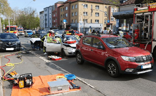 Am 17.4.2026 kam es gegen 10:15 Uhr auf der Straße Heiliger Weg in Höhe der Kronprinzenstraße zu einem Auffahrunfall mit drei beteiligten Fahrzeugen. Dabei wurden zwei Personen verletzt.